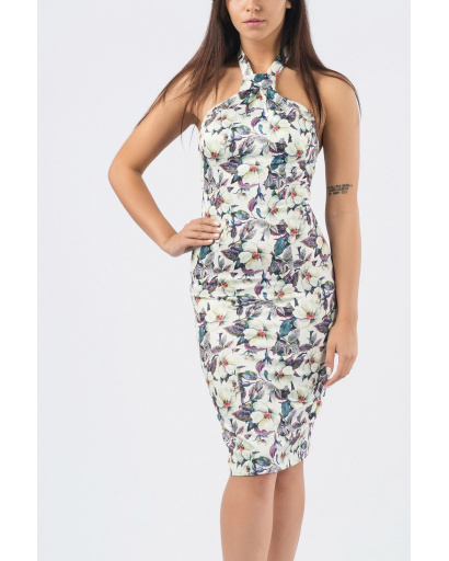 Бежева сукня в квіточку 46678, Колір: Бежевий, Розмір: XS